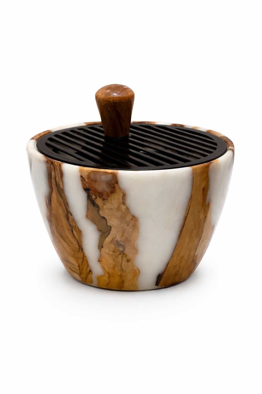 مبخر صغير أنيق مصنوع من خشب الزيتون الطبيعي بتفاصيله الفريدة، ممزوج بـ الإيبوكسي عالي الجودة ليمنحه ألوانًا متعددة ولمسة فنية راقية.